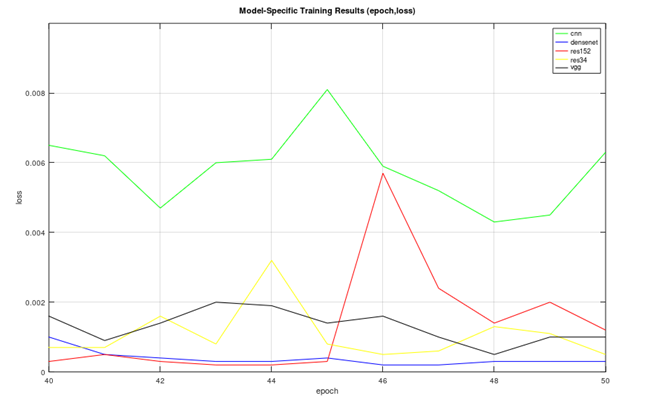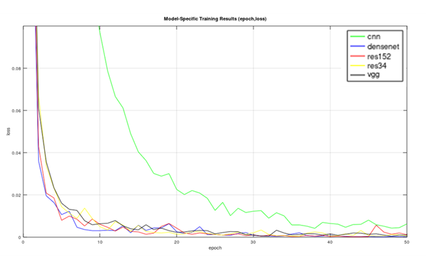 하지만 모델별 평가 결과는 파란색 선인 Dense Net이 가장 좋은 수렴과 정확도를 보였 다.