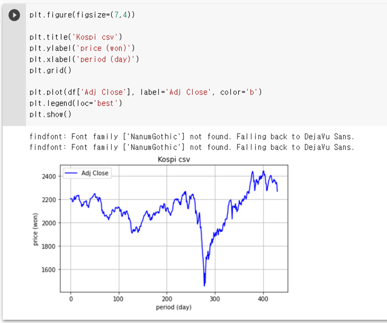 -> Plot 그래프를 활용하여 가격과 날짜의 순번을 이용해 종가 가격만 그래프화 하여 확인