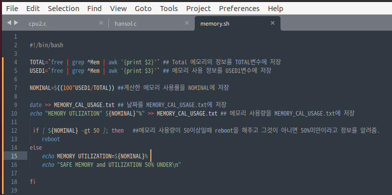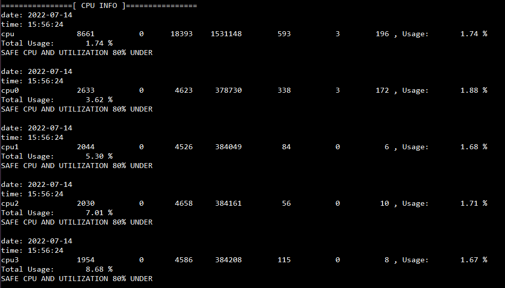 4 Day 간 CPU와 Memory의 사용량을 파악하고 기록하며, 관리하며 어떤 프로세스의 사용량이 큰지 출력하며 Reboot까지 실행시킬 수 있는 코드를 제작하였습니다. 감사합니다.
