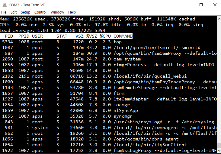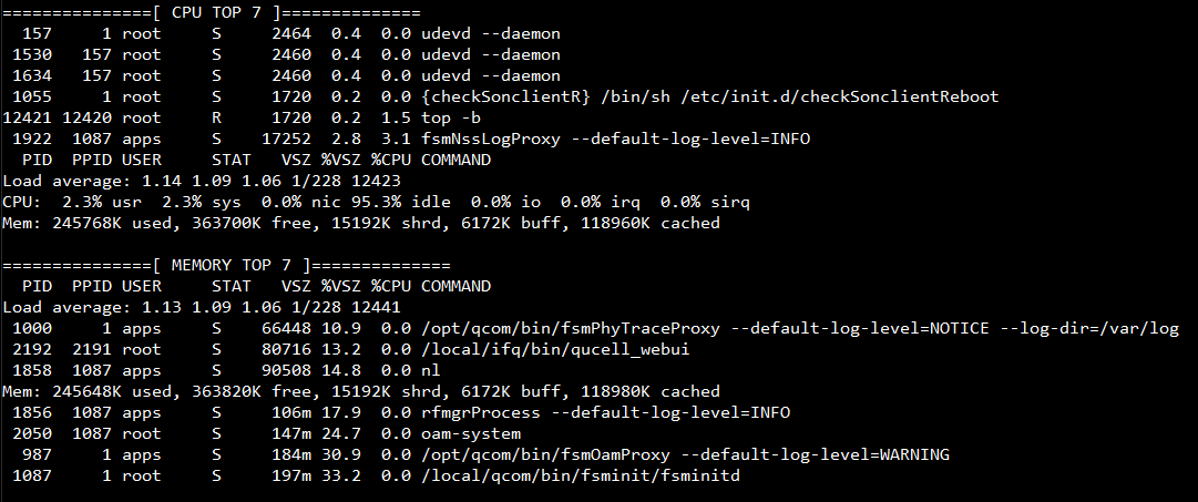 2. 리눅스와 4G Board에서 CPU, MEM process를 OAM 하여 출력하는 코드 및 관리