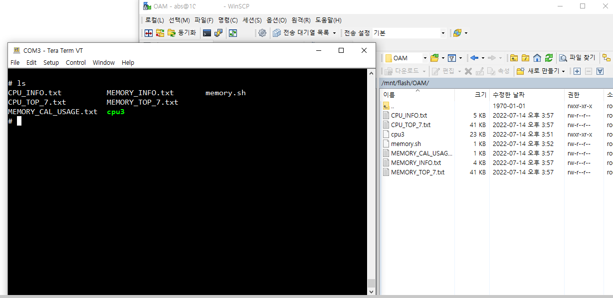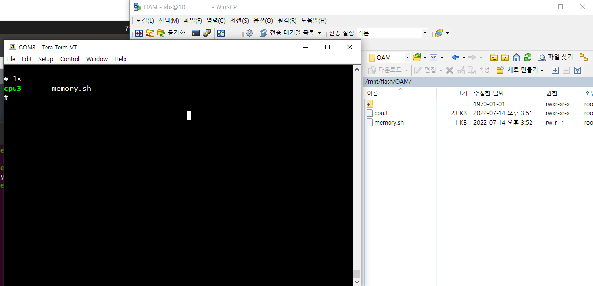 3.(1)WinSCP를 통해 4G Board에 /mnt/flash/OAM경로에 파일을 보내줍니다.