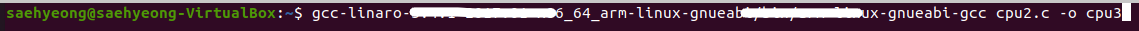 처음으로 작성한 cpu2.c파일을 cpu3로 컴파일해줍니다. 하얀 부분은 회사 사내 보안이기에 가렸습니다.